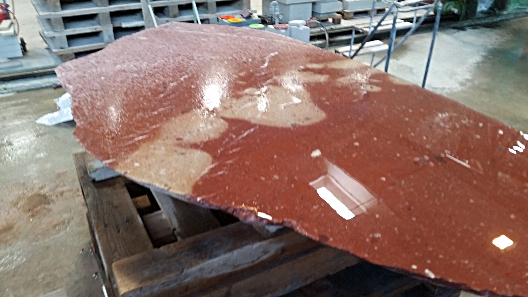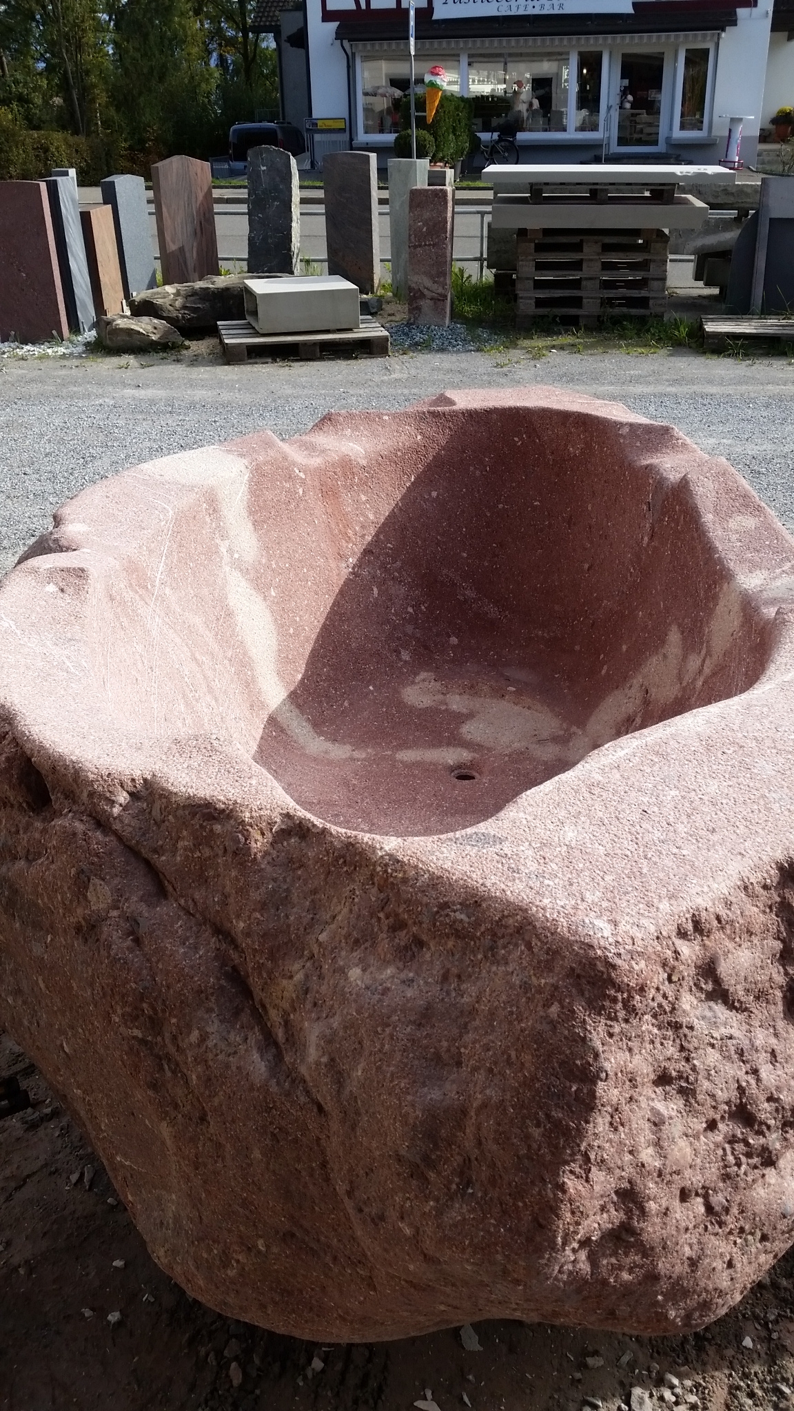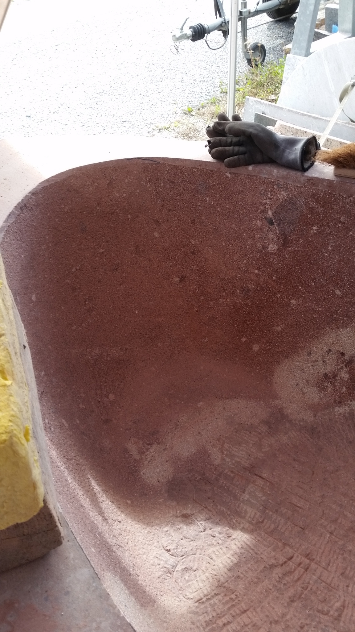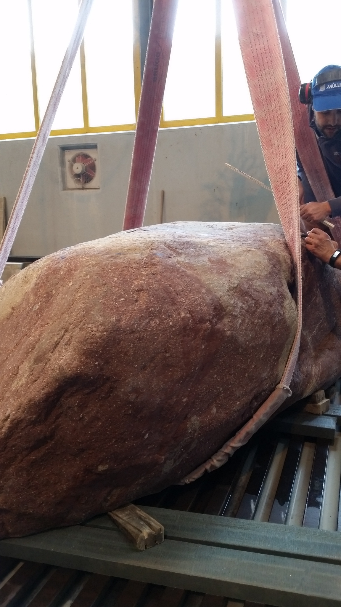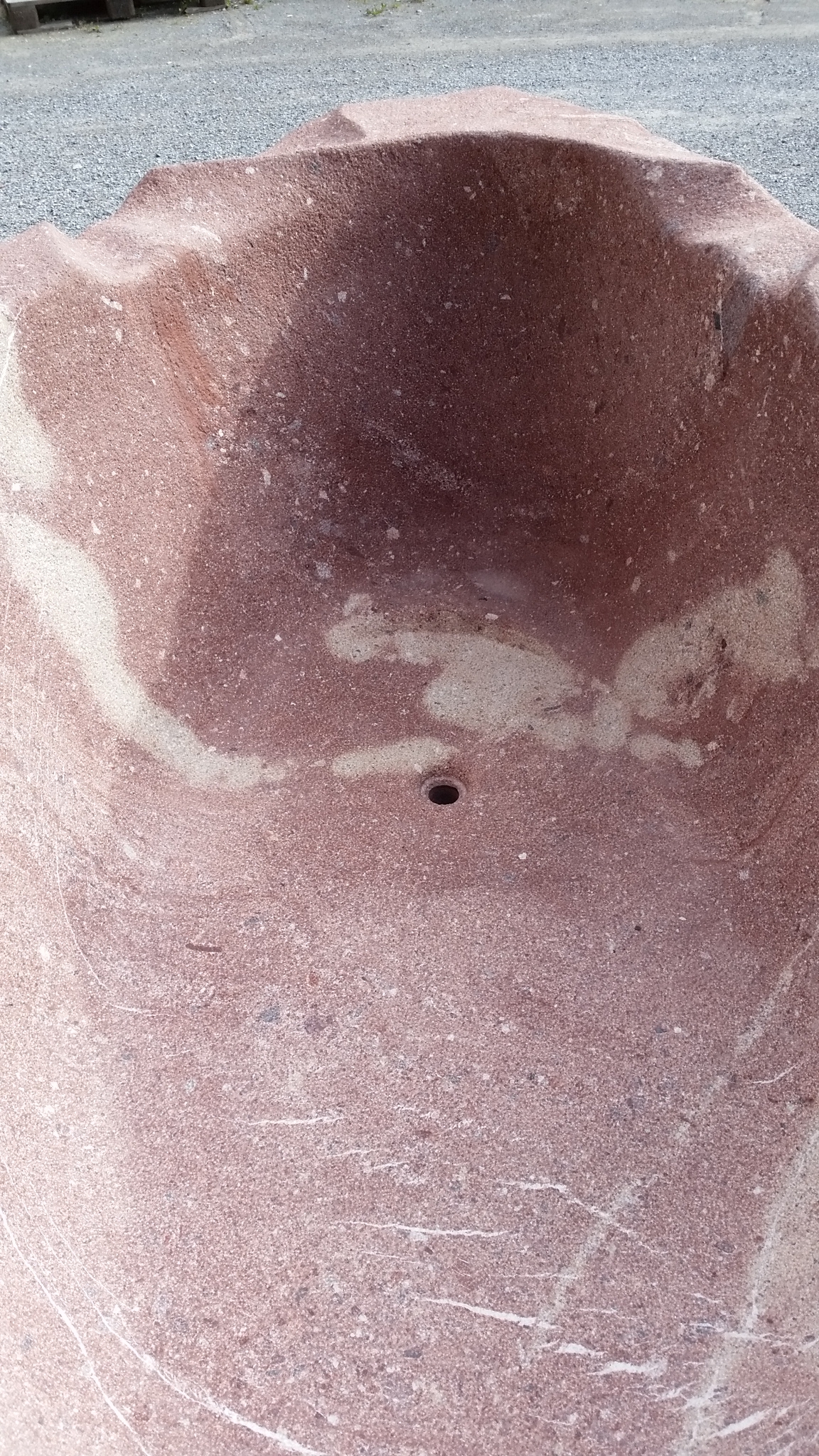 Aus dem Glarner Rotrisi Findling, der ursprünglich 5.8 Tonnen wog, wurde eine Badewanne für einen Neubau angefertigt.