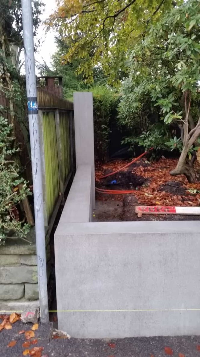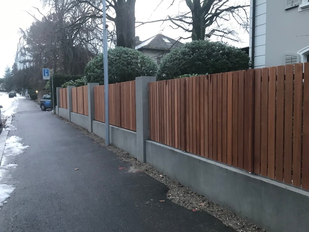 Zum Schluss wurden die Fugen zwischen den Elementen gefüllt und mit passendem Fugenmörtel ausgefugt. Und die Kunststeine wurden mit einem Holzzaun ergänzt.