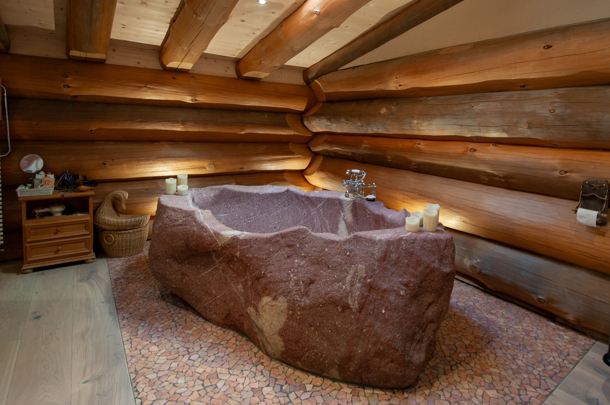 Im Werk wurde eine Standfläche, sowie die oberste Schicht des Steins abgesägt, aus der eine Tischplatte angefertigt wurde. Später wurde der Findling ausgebohrt und ausgefräst, sodass die Form einer massgeschneiderten Badewanne entstehen konnte. Zum Schluss wurde die Oberfläche der Wanne gestockt und gebürstet. Die vollendete Badewanne wiegt nun etwa drei Tonnen und steht jetzt in einer Blockhütte.