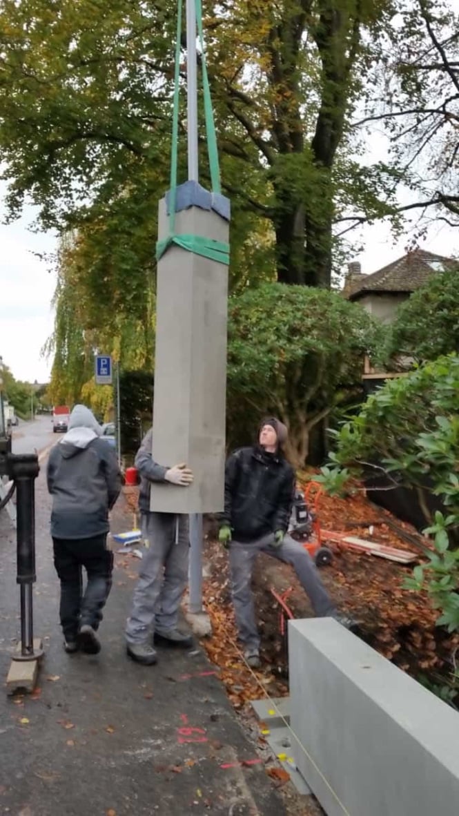 Die neue Zaunanlage besteht aus neun Postamenten und sieben Wangensteinen.