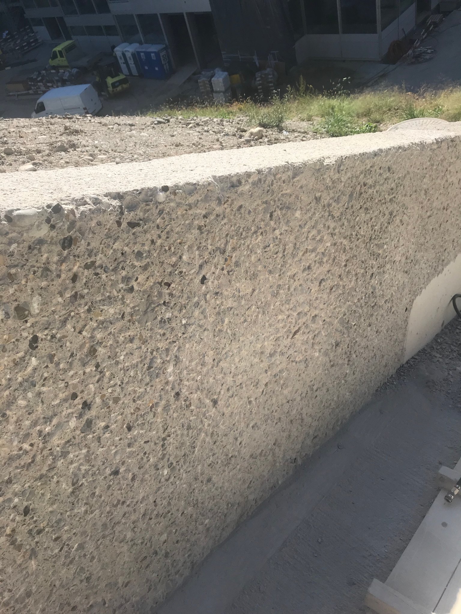 Für das zukünftige Dienstleistungszentrum "The Circle", wo es Büros, Hotels, Restaurants, Läden, wie auch eine Filiale des Universitätsspitals geben wird, hat sich unser Team in Zürich neben dem Flughafen tatkräftig mit den Betonwänden auseinandergesetzt. Diese Betonwände wurden allesamt mit Pressluftwerkzeug gestockt oder gespitzt, was eine strenge aber auch lohnende Arbeit darstellt. Der Auftrag lautete die Wände, die den Weg für die Standseilbahn bereiten werden, mit einem natürlich wirkenden Aussehen auszustatten. Wir hoffen, dass sich die Eröffnung dieses gigantischen Bauwerks nicht noch länger hinauszögert, damit wir auch bald eine Fahrt mit der Standseilbahn geniessen können.
