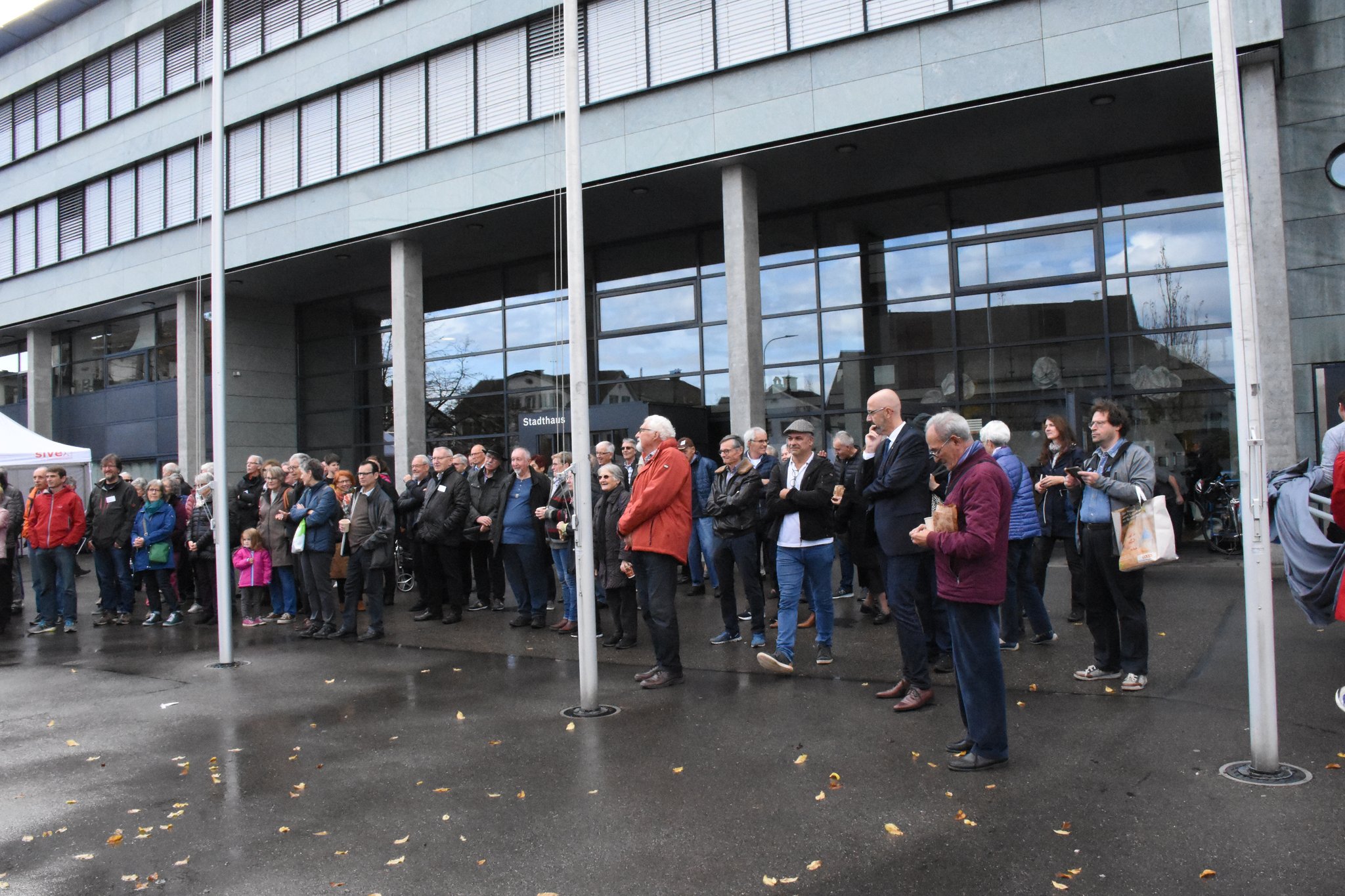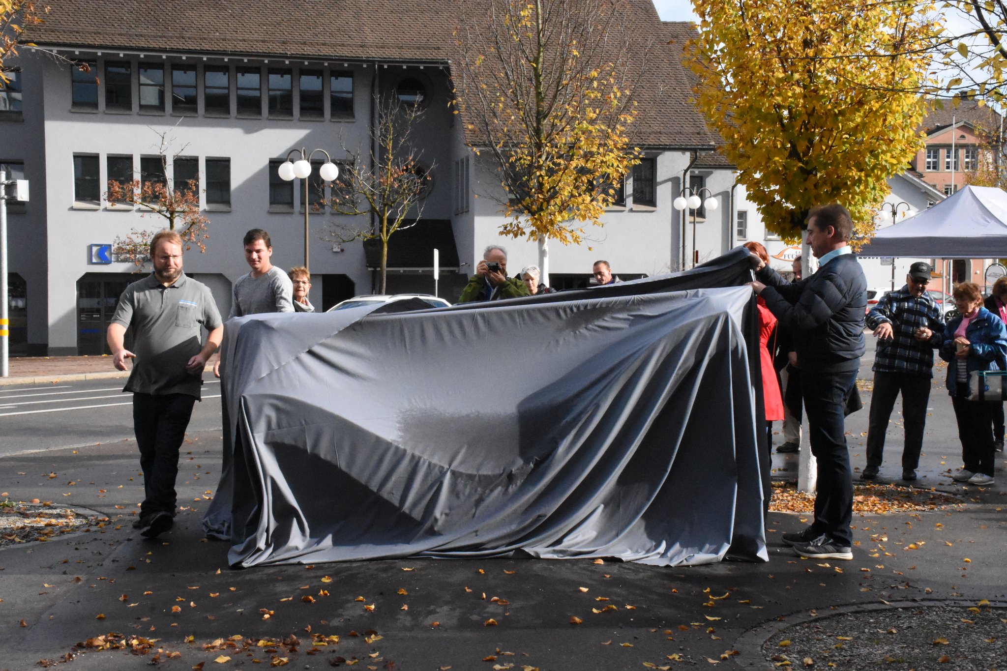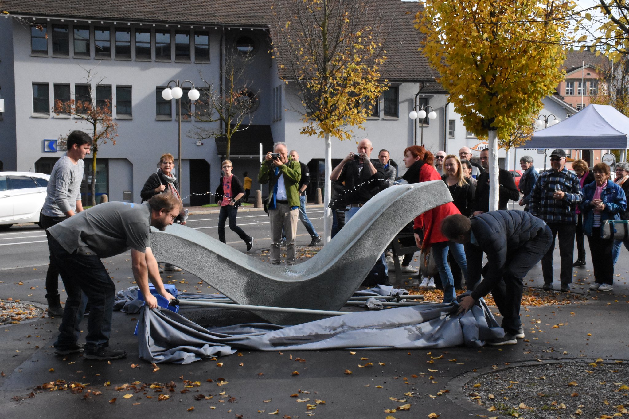 Feierliche Enthüllung des Brunnens mit diversen Rednern der Stadt Dübendorf und der Wasserversorgung Dübendorf. Neben lobenden Worten gab es auch Speiss und Trank.